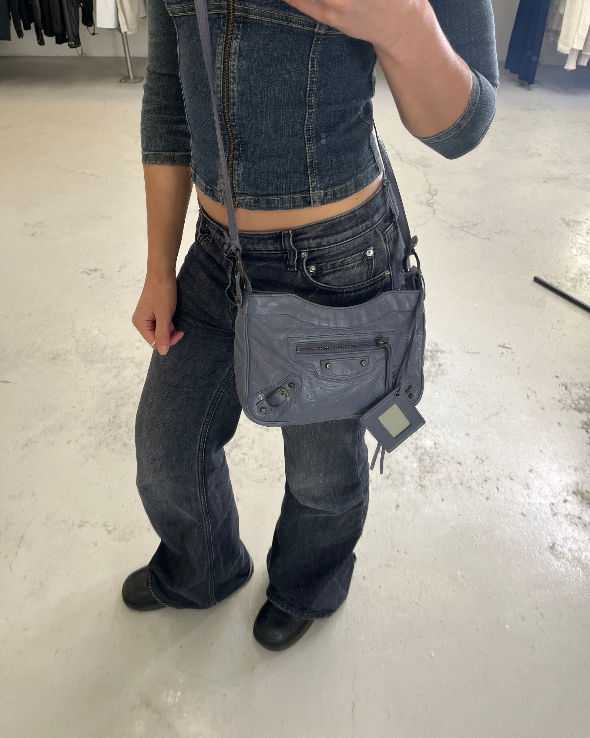 Balenciaga crossbody hip-bag in a beautiful lilac color. The exterior is made of soft lambskin leather.