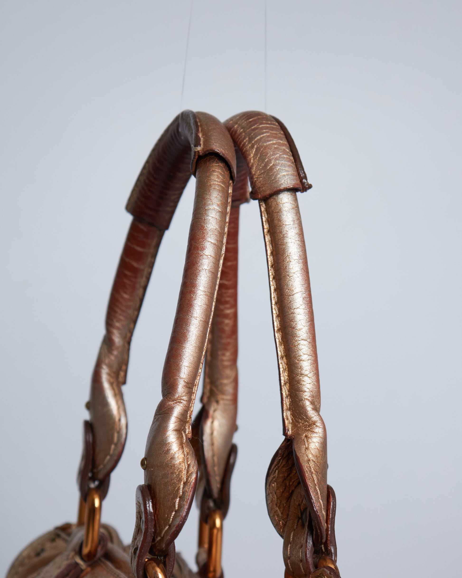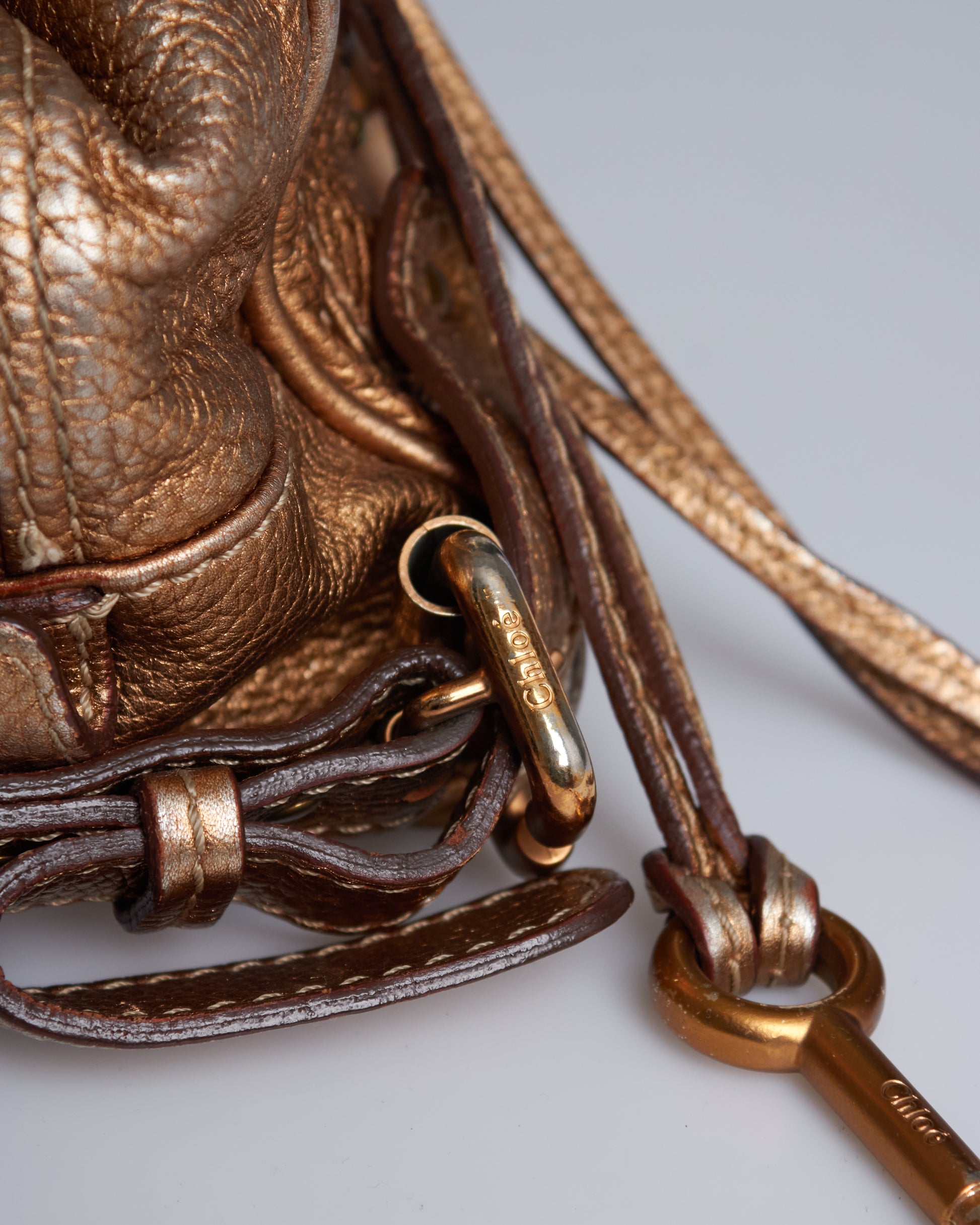 This Chloé Paddington Mini Bag features a bold metallic gold leather exterior and signature gold-tone hardware, including the iconic Chloé lock and key.