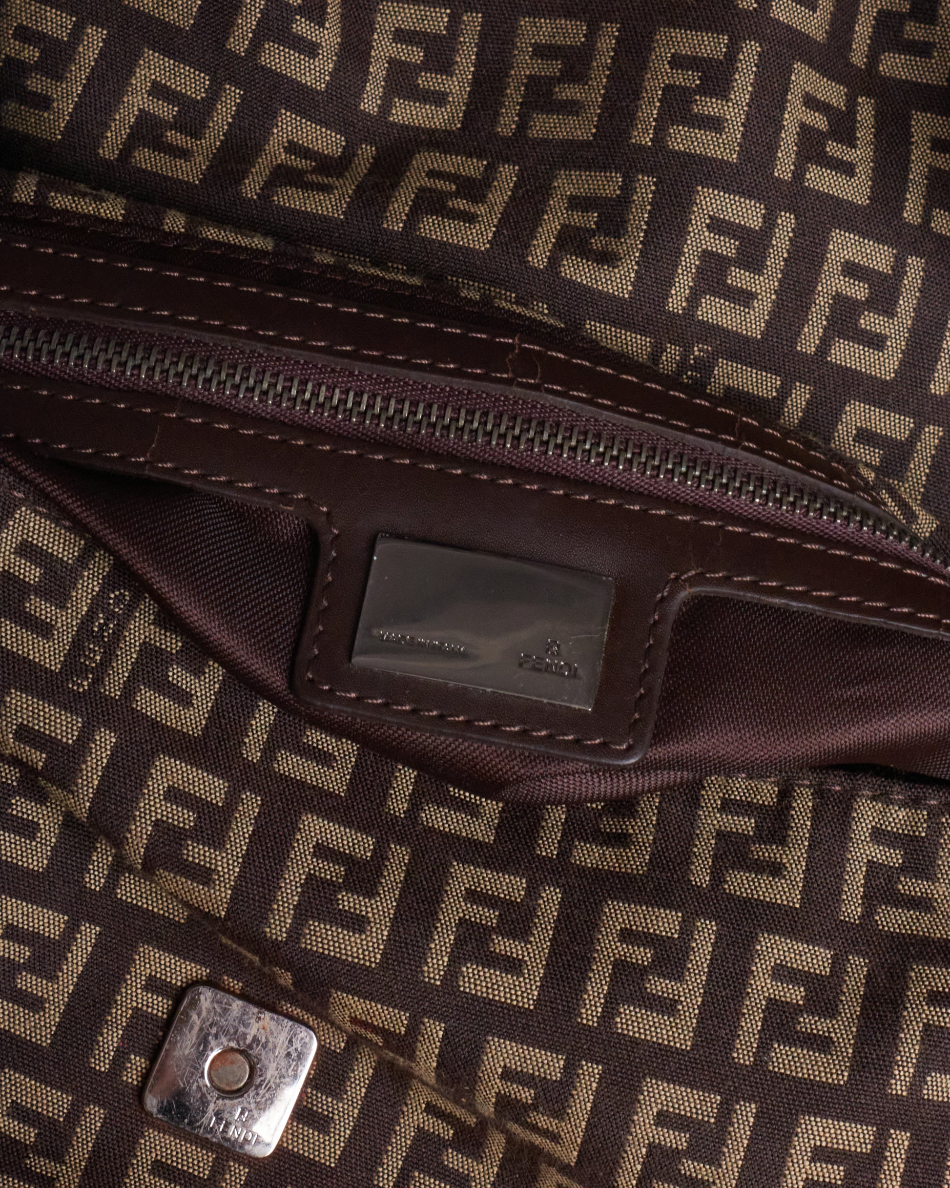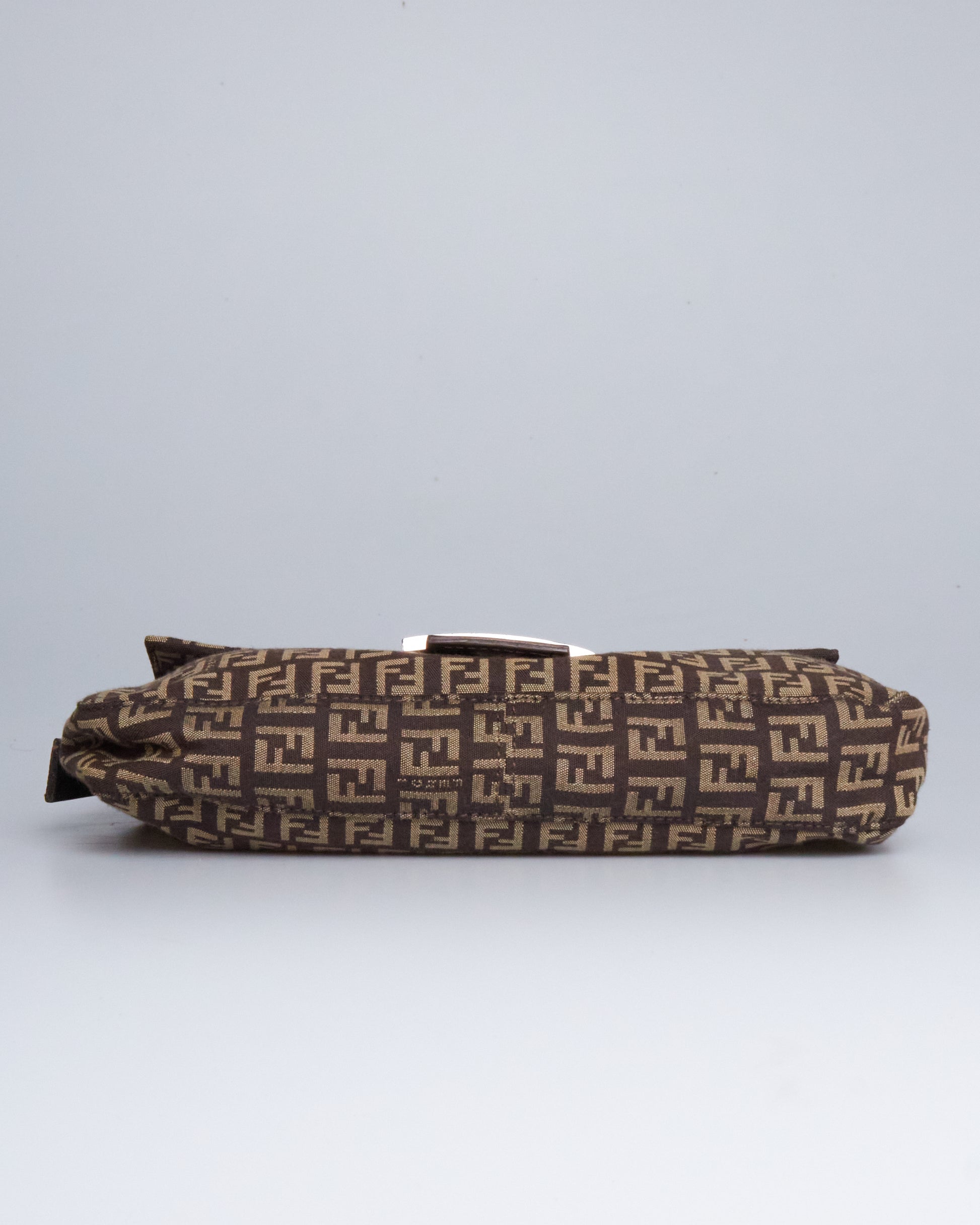 Beautiful Fendi Zucca Baguette shoulder bag in the iconic pattern with silver-tone details.