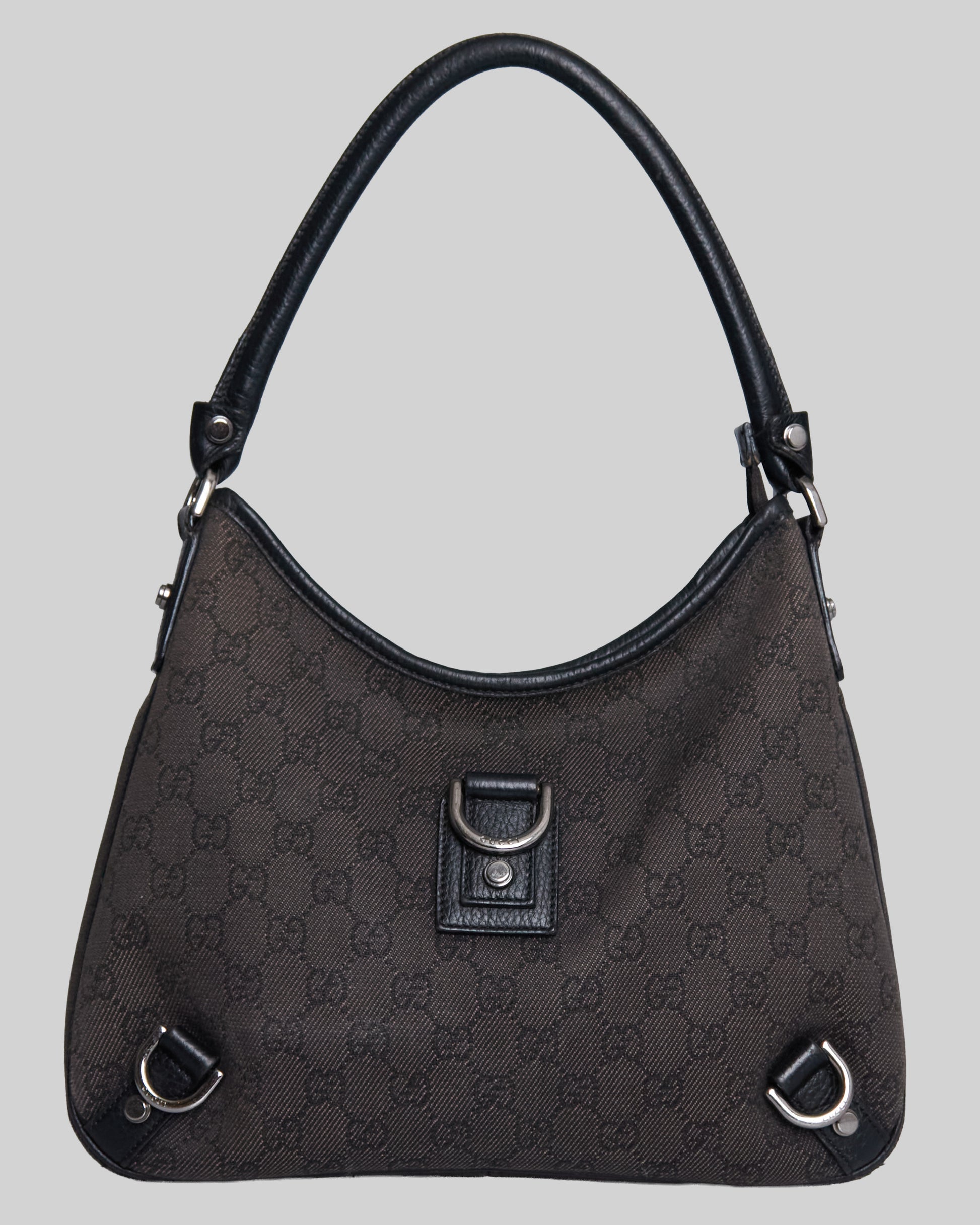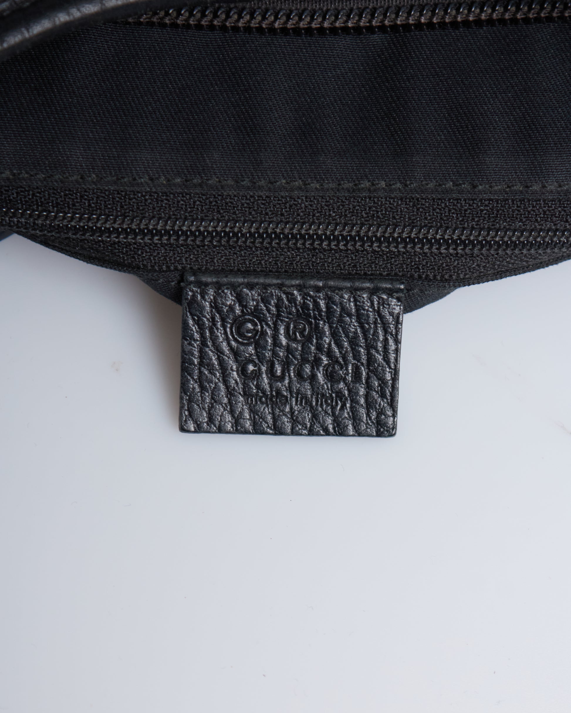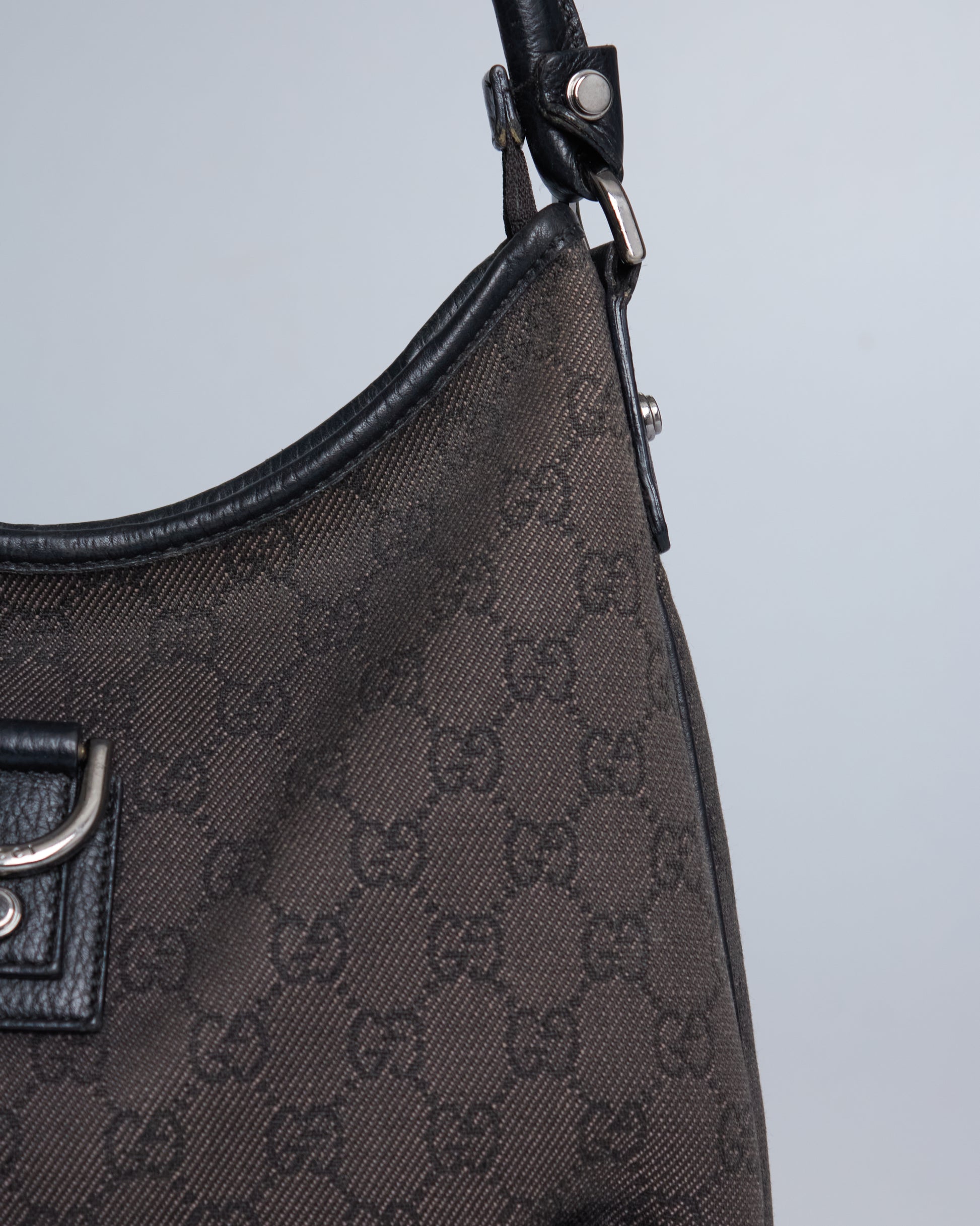 This Gucci Abbey bag has black GG canvas, black leather details and has subtle silver-tone hardware.