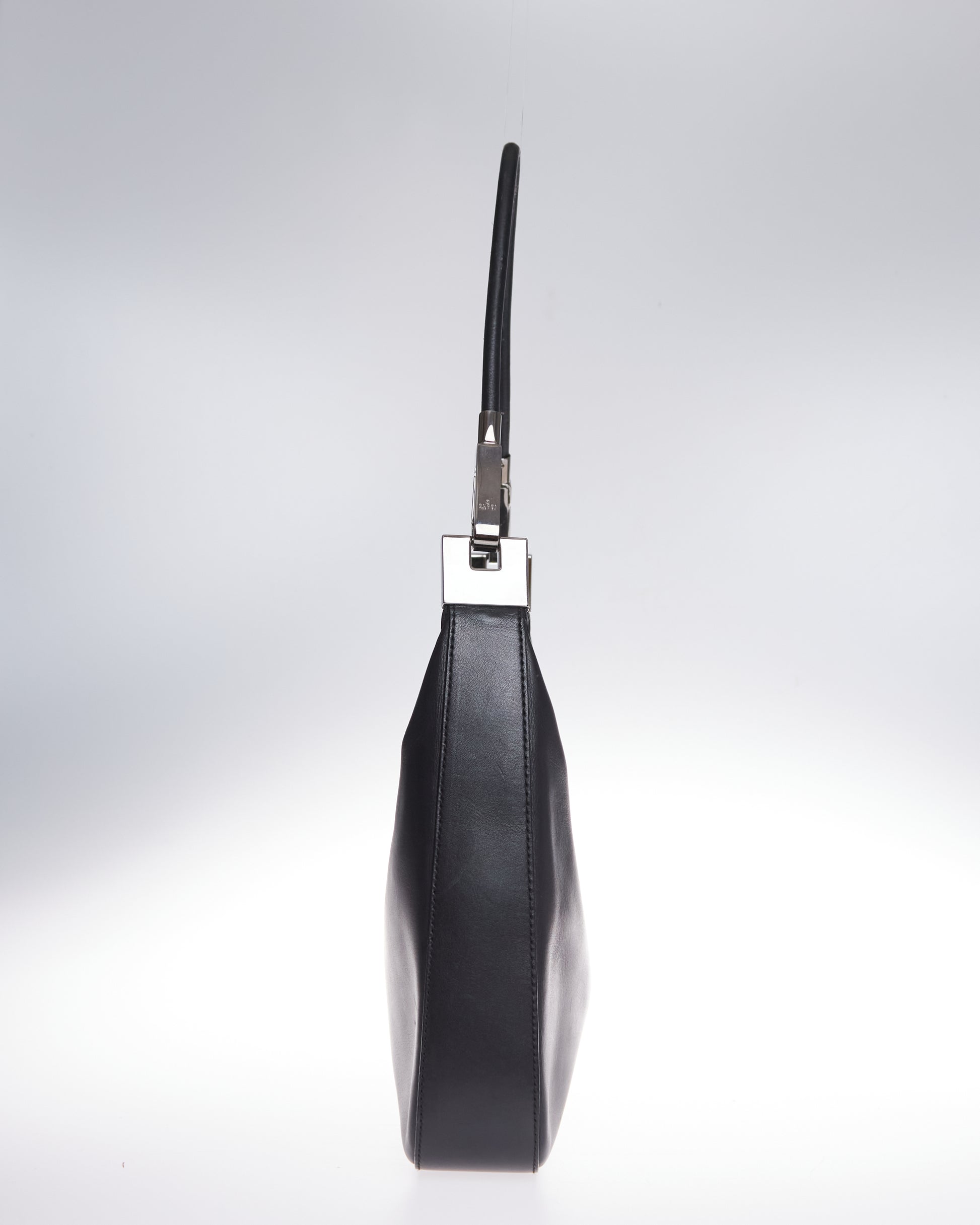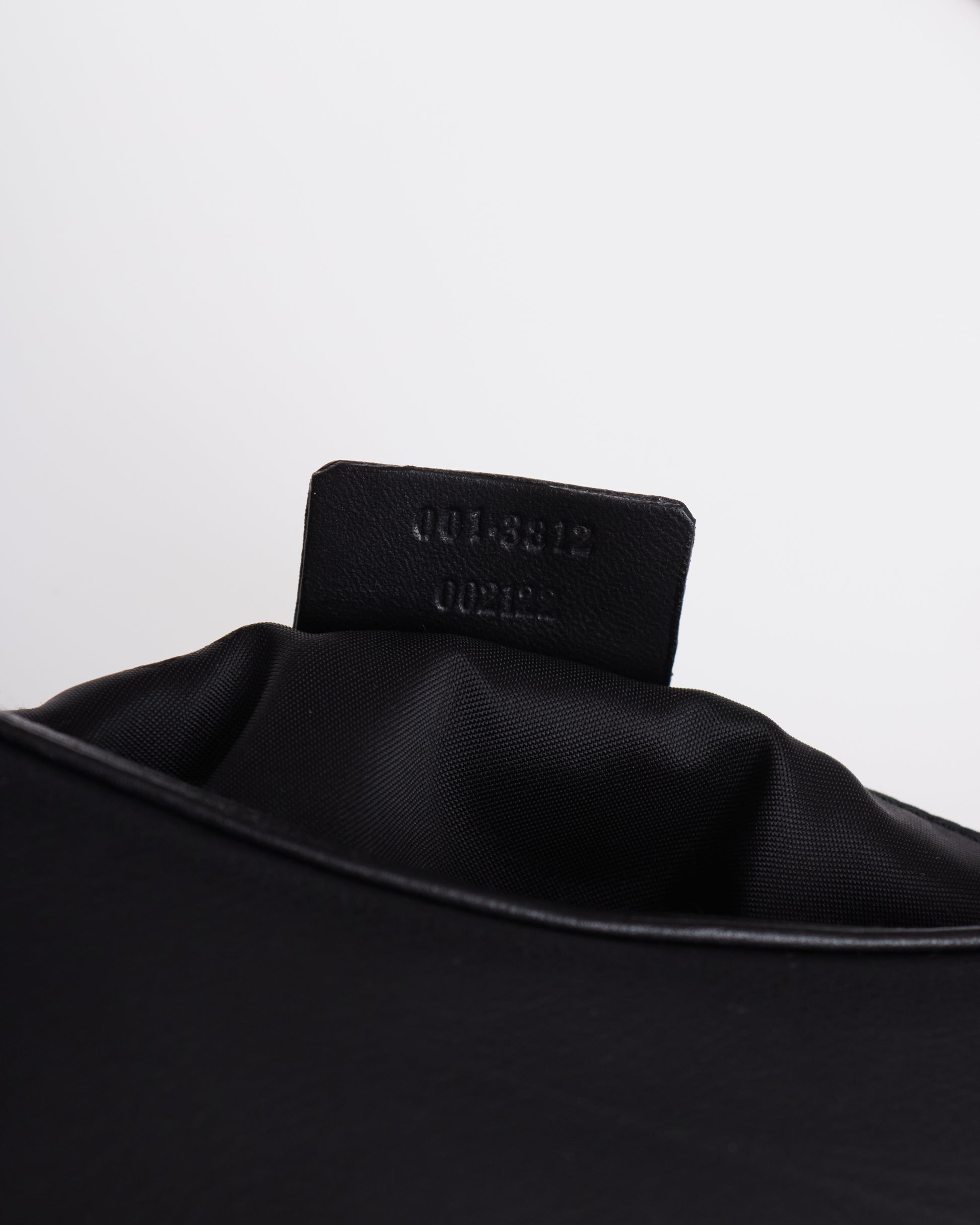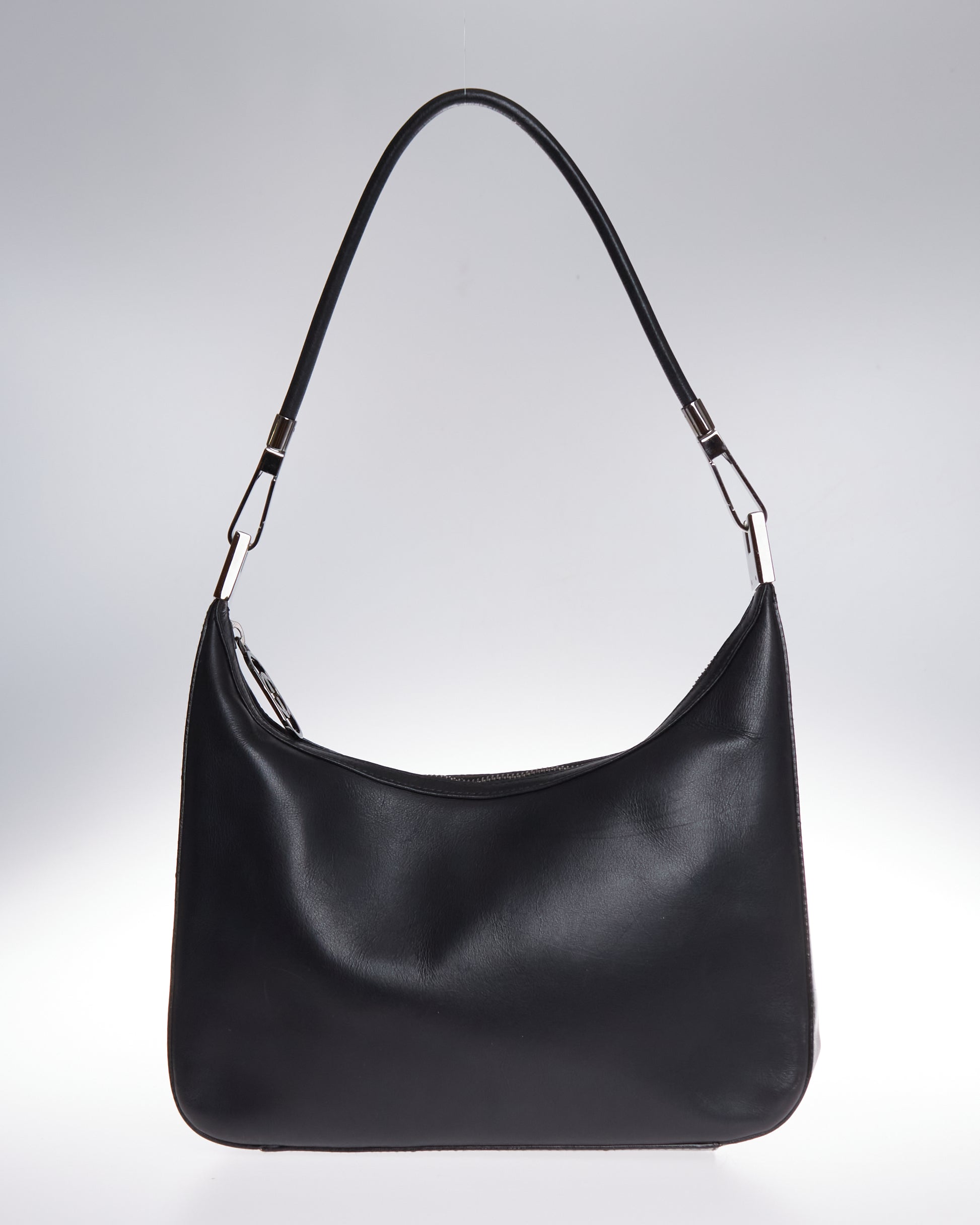 This elegant bag by Tom Ford for Gucci has black a leather exterior and has subtle silver-tone hardware on both sides.