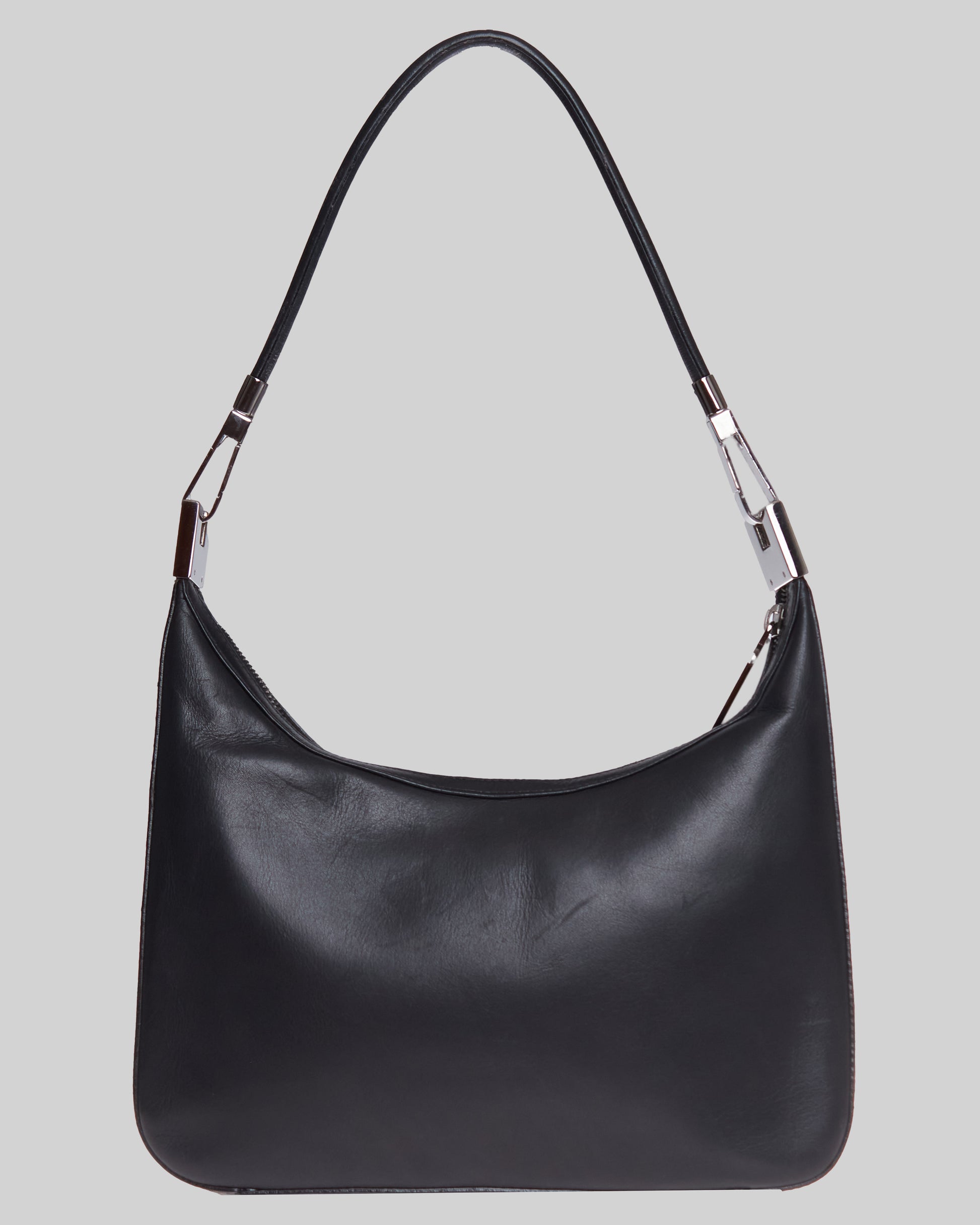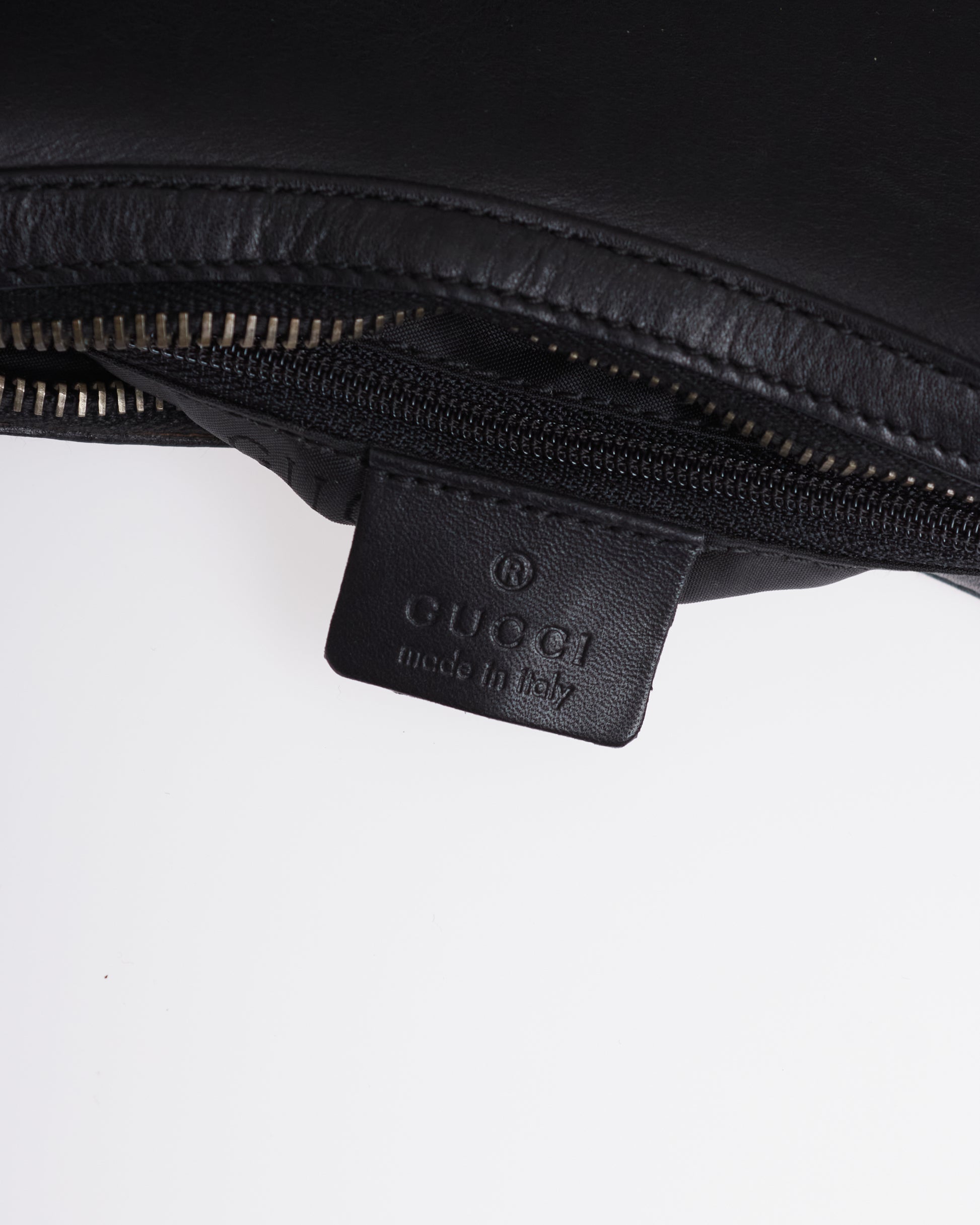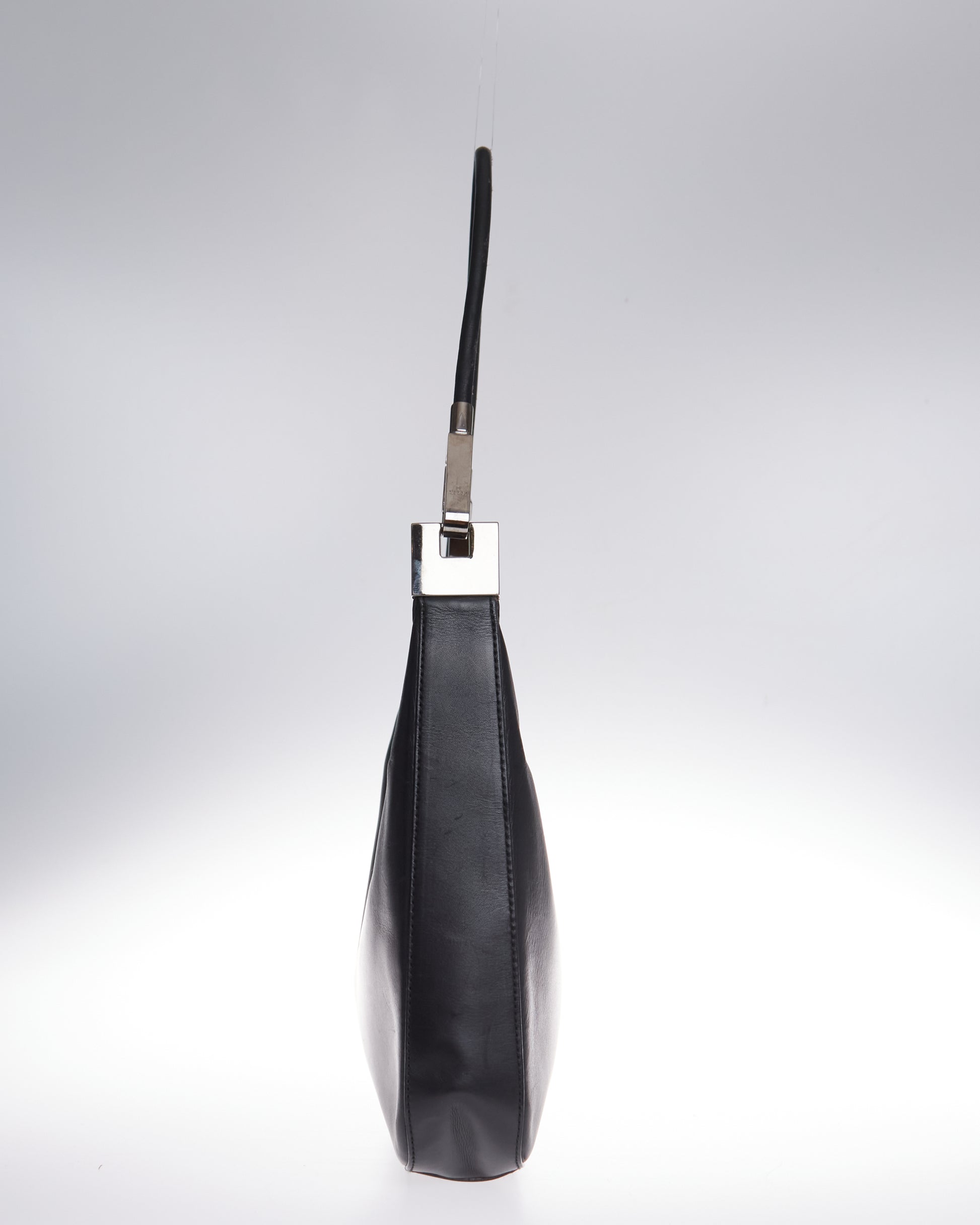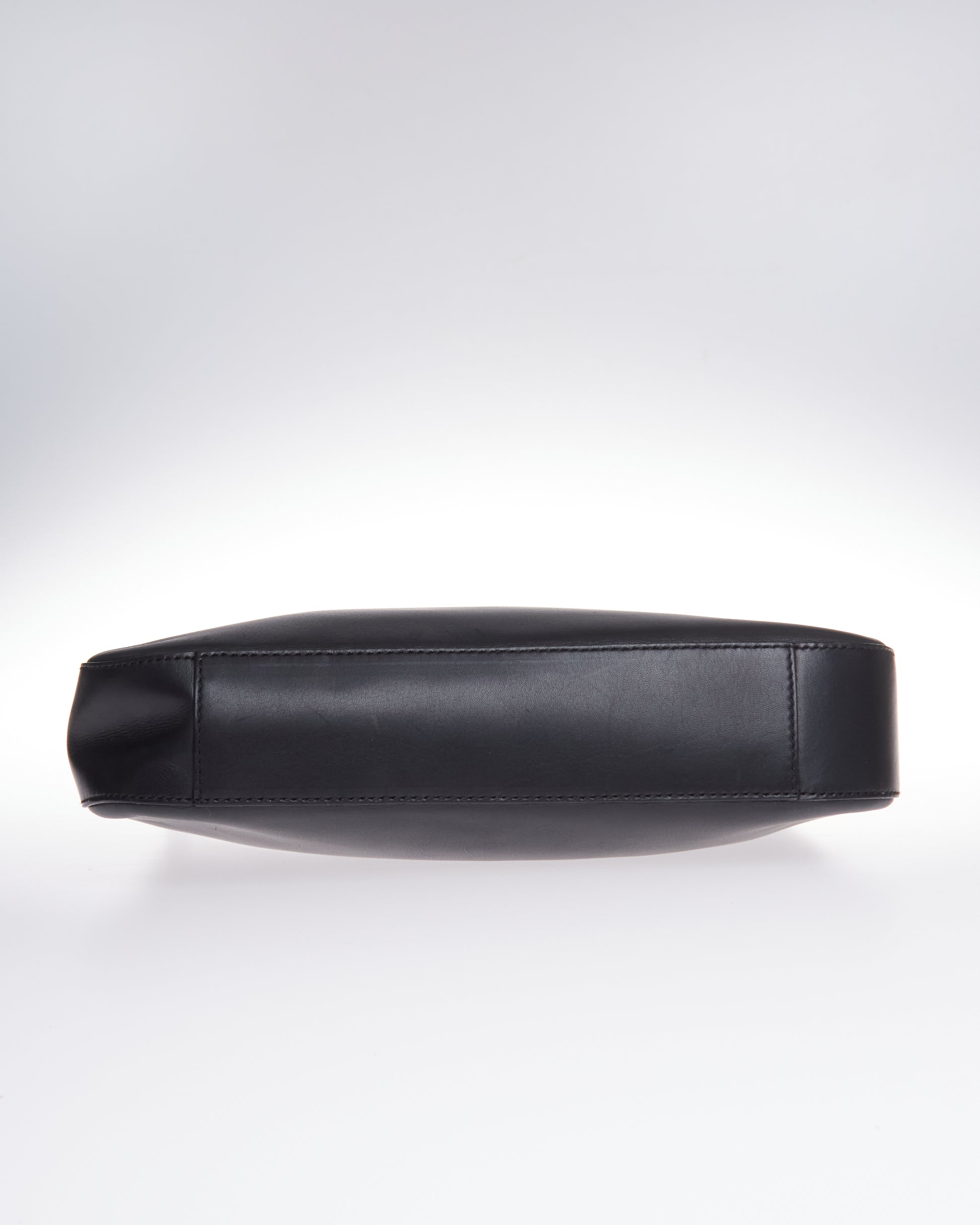This elegant bag by Tom Ford for Gucci has black a leather exterior and has subtle silver-tone hardware on both sides.