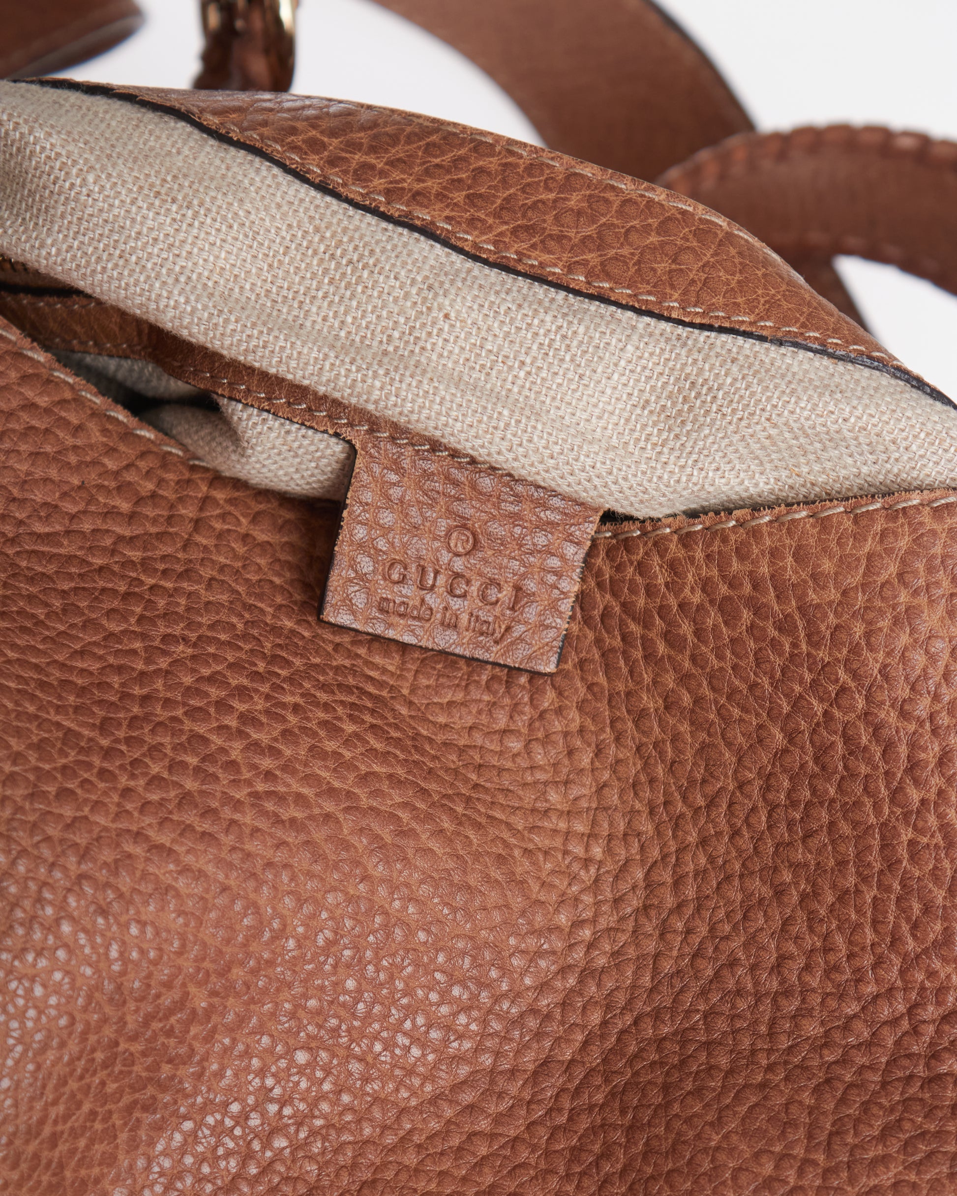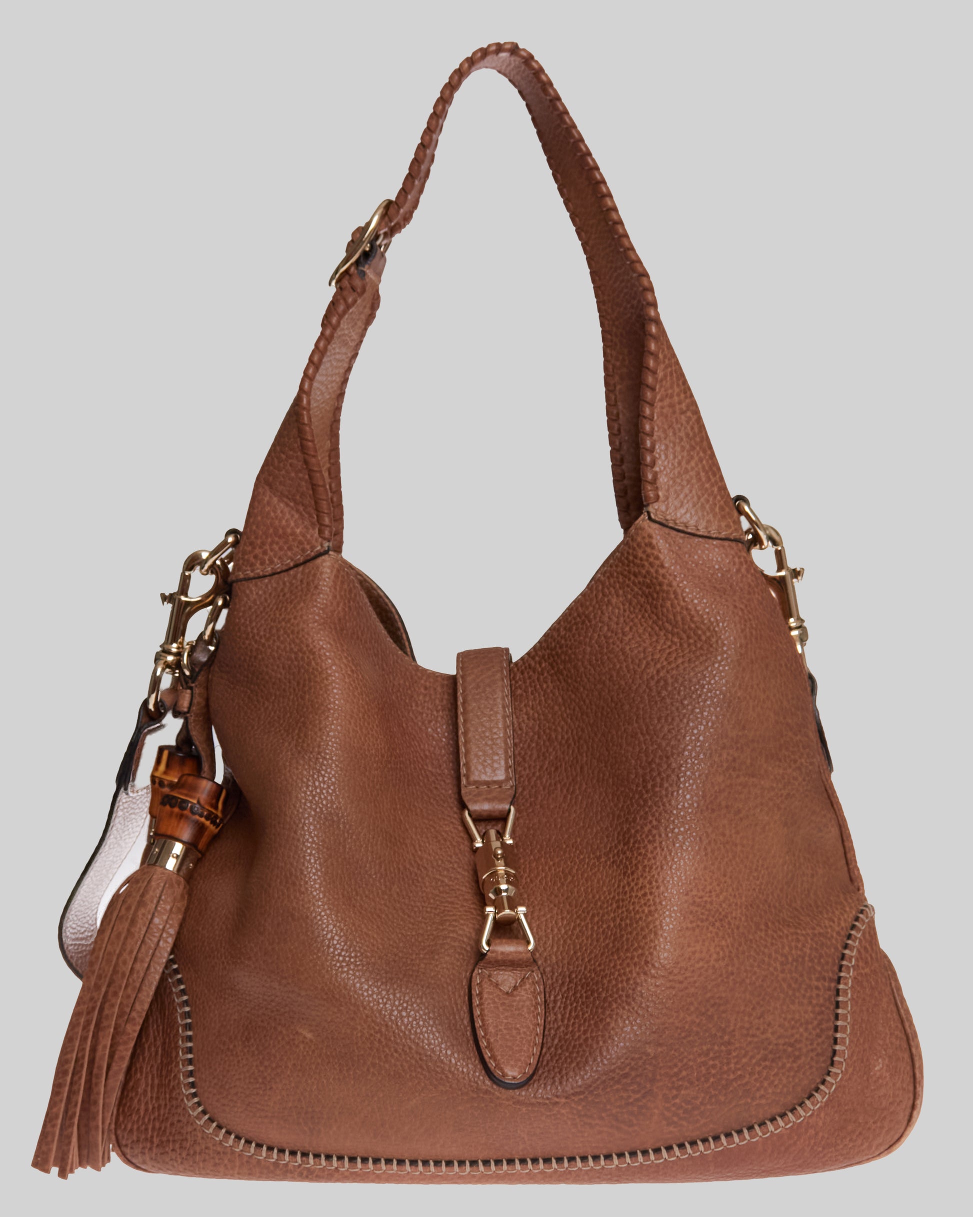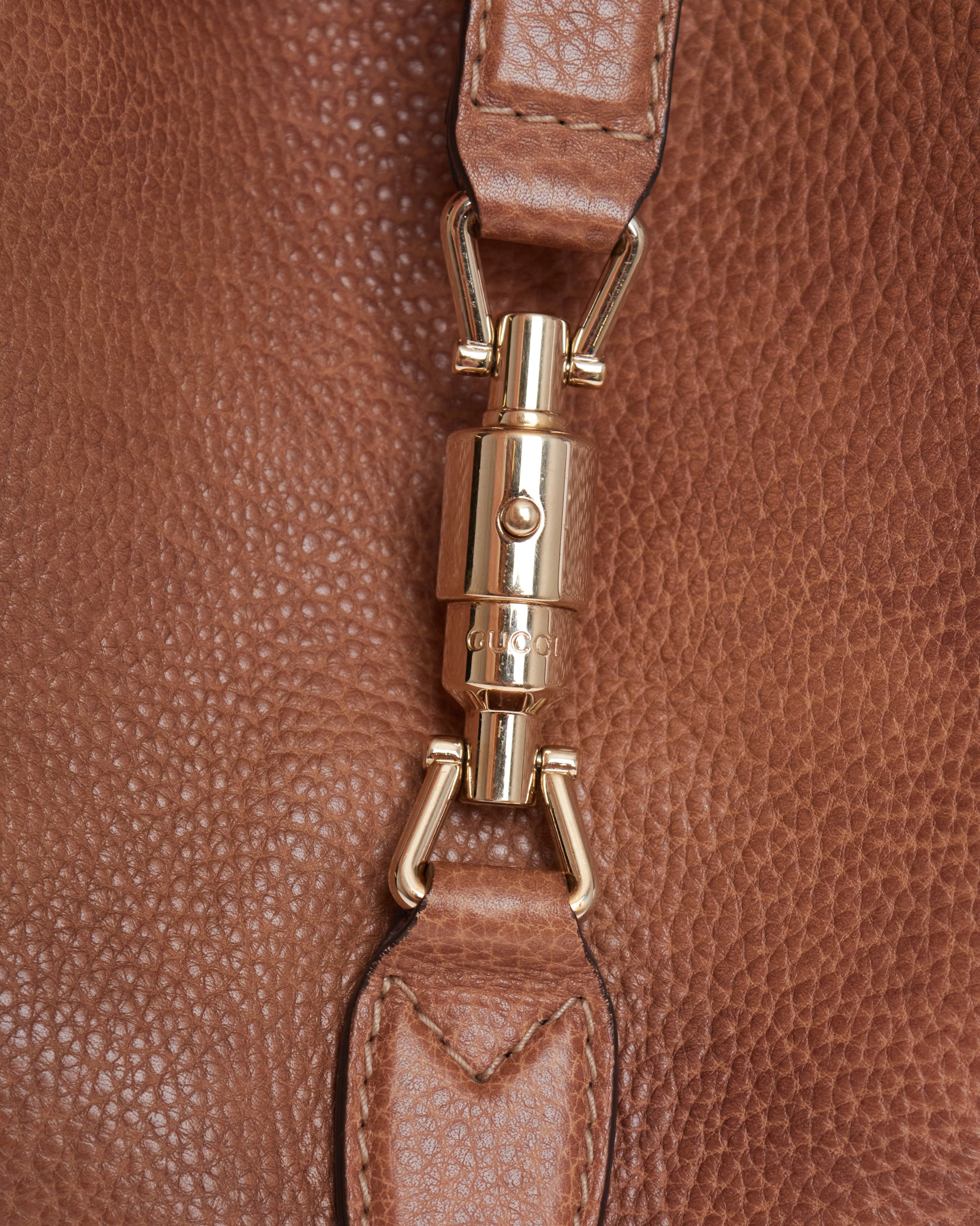 This Gucci New Jackie Shoulder Bag is a timeless classic with a modern twist. Crafted from brown, supple grained leather, this bag exudes luxury and sophistication.