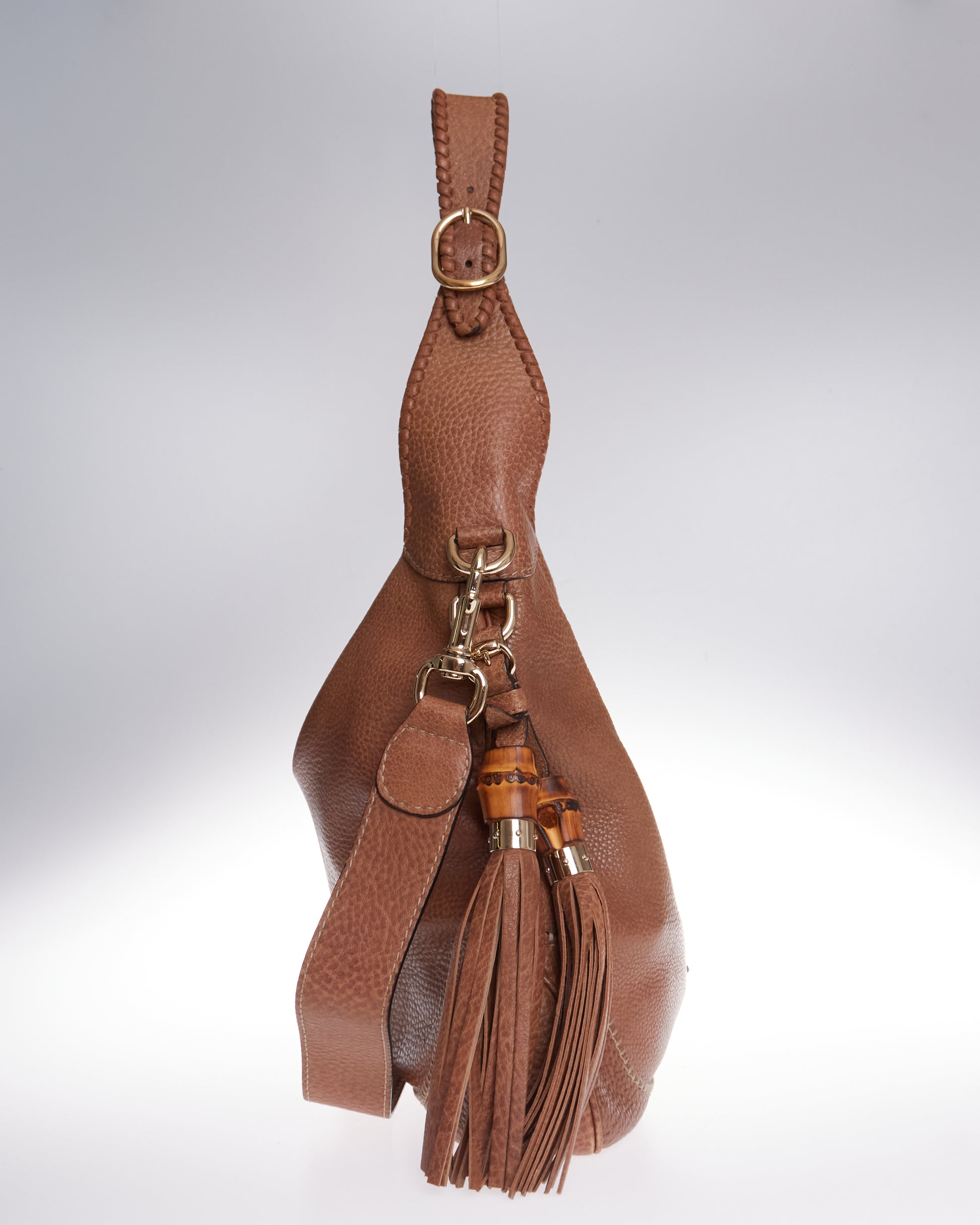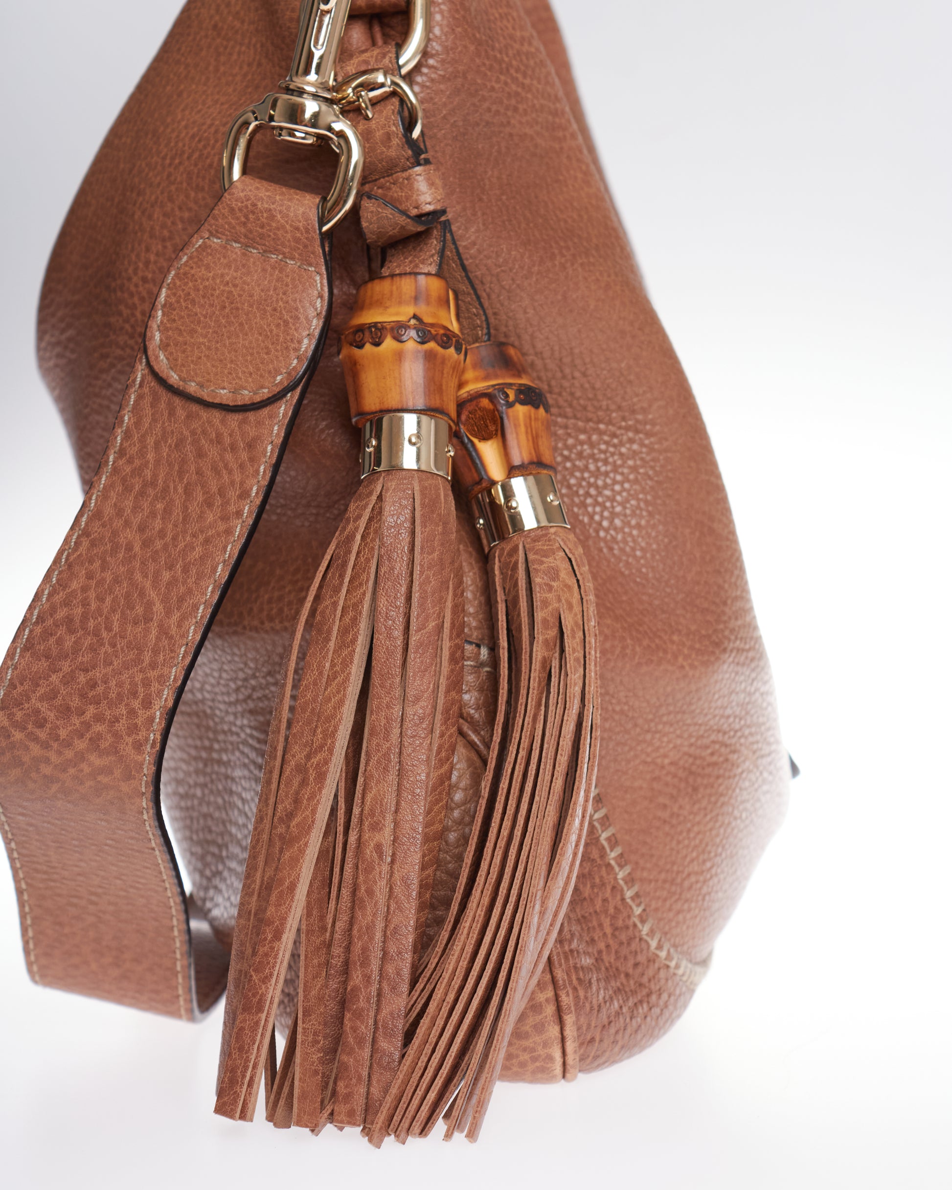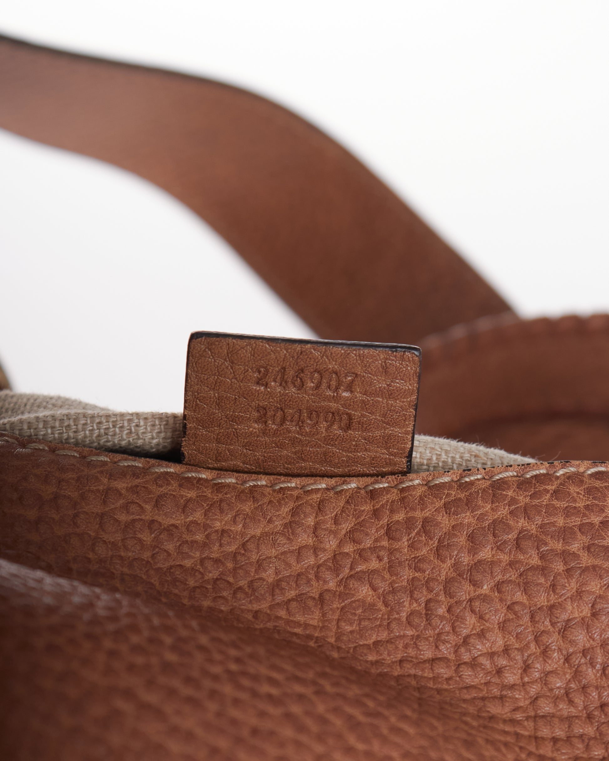 This Gucci New Jackie Shoulder Bag is a timeless classic with a modern twist. Crafted from brown, supple grained leather, this bag exudes luxury and sophistication.