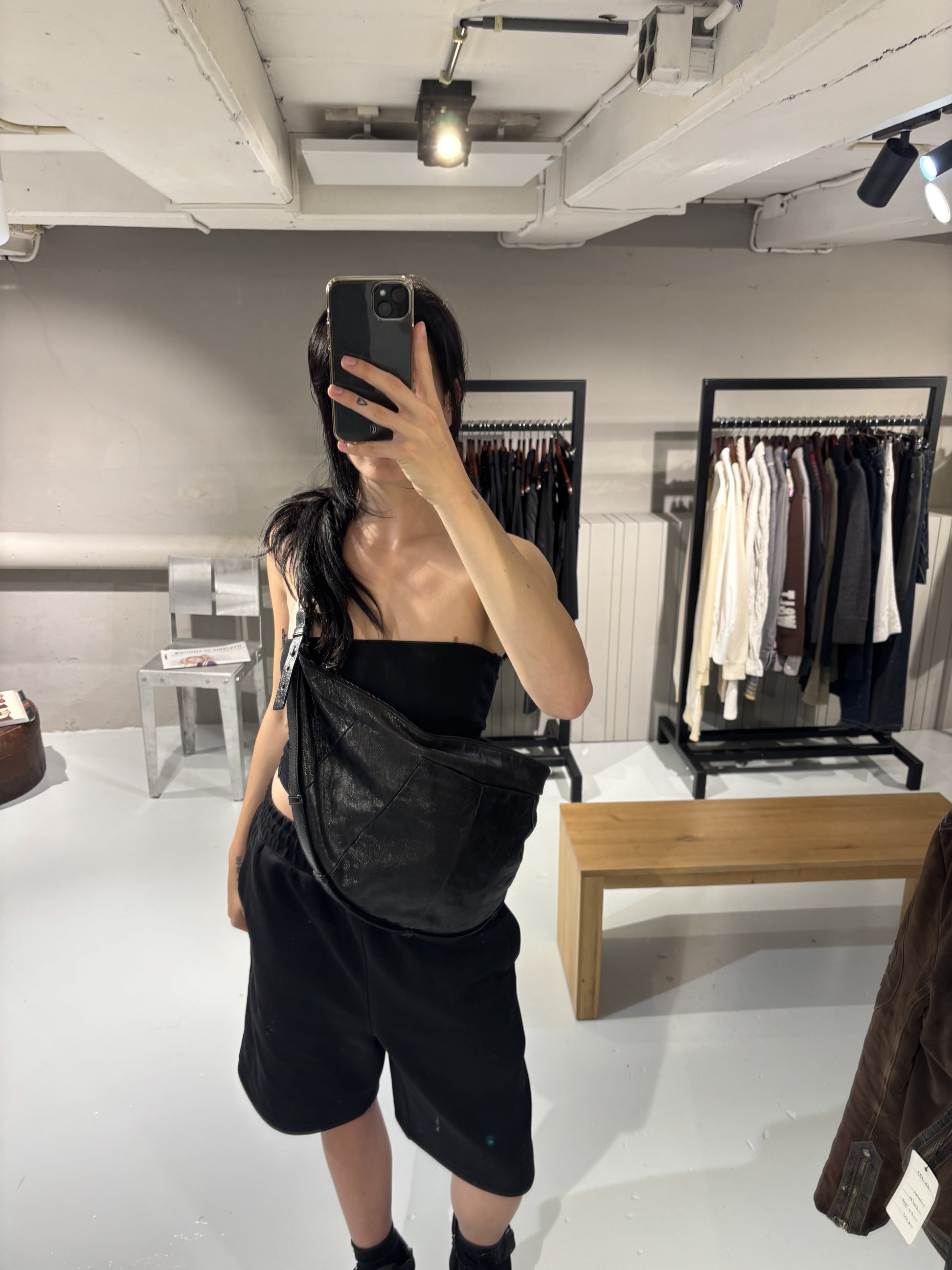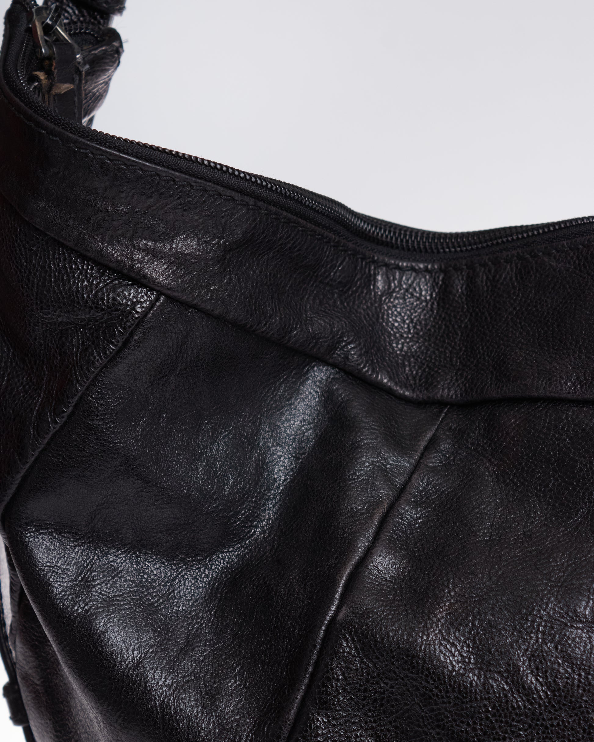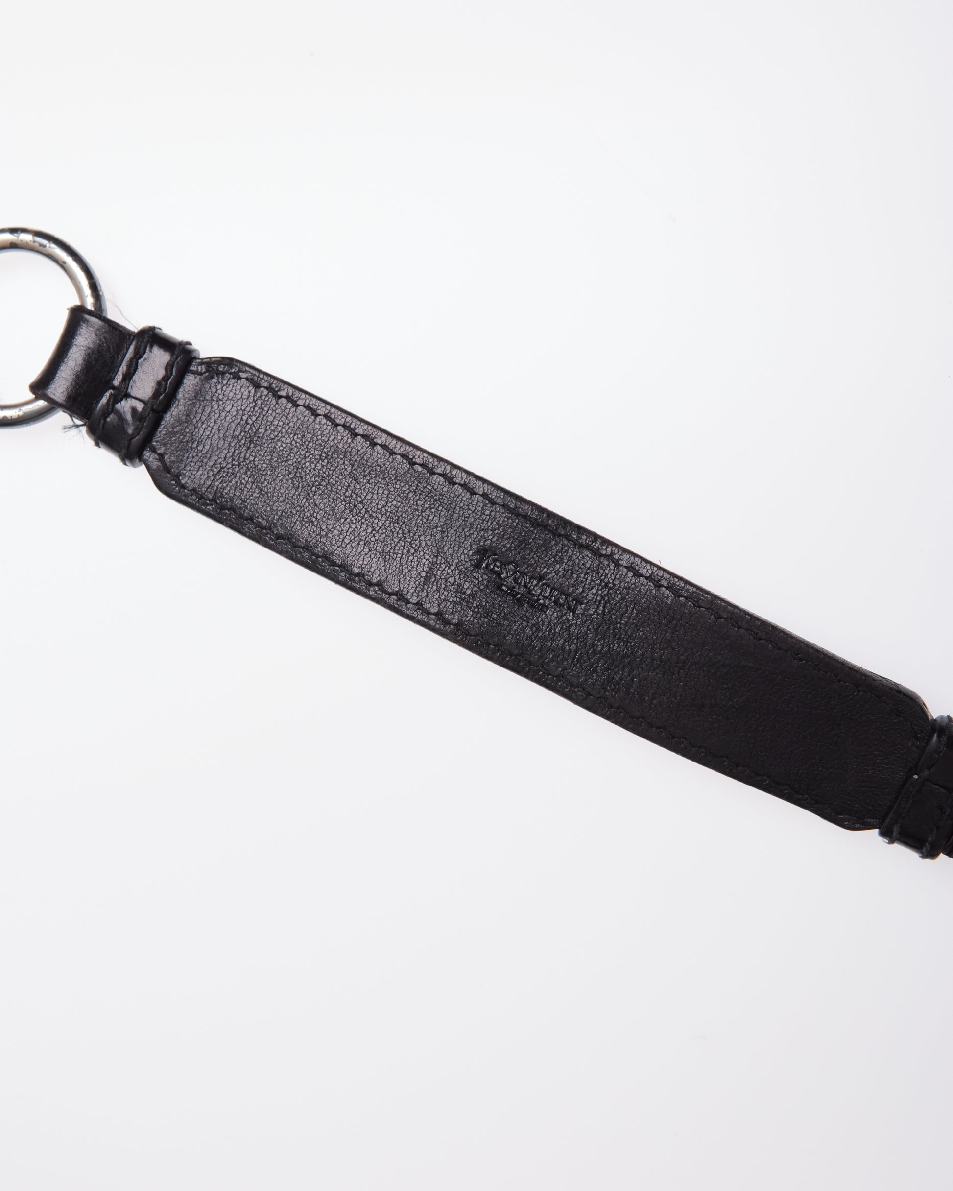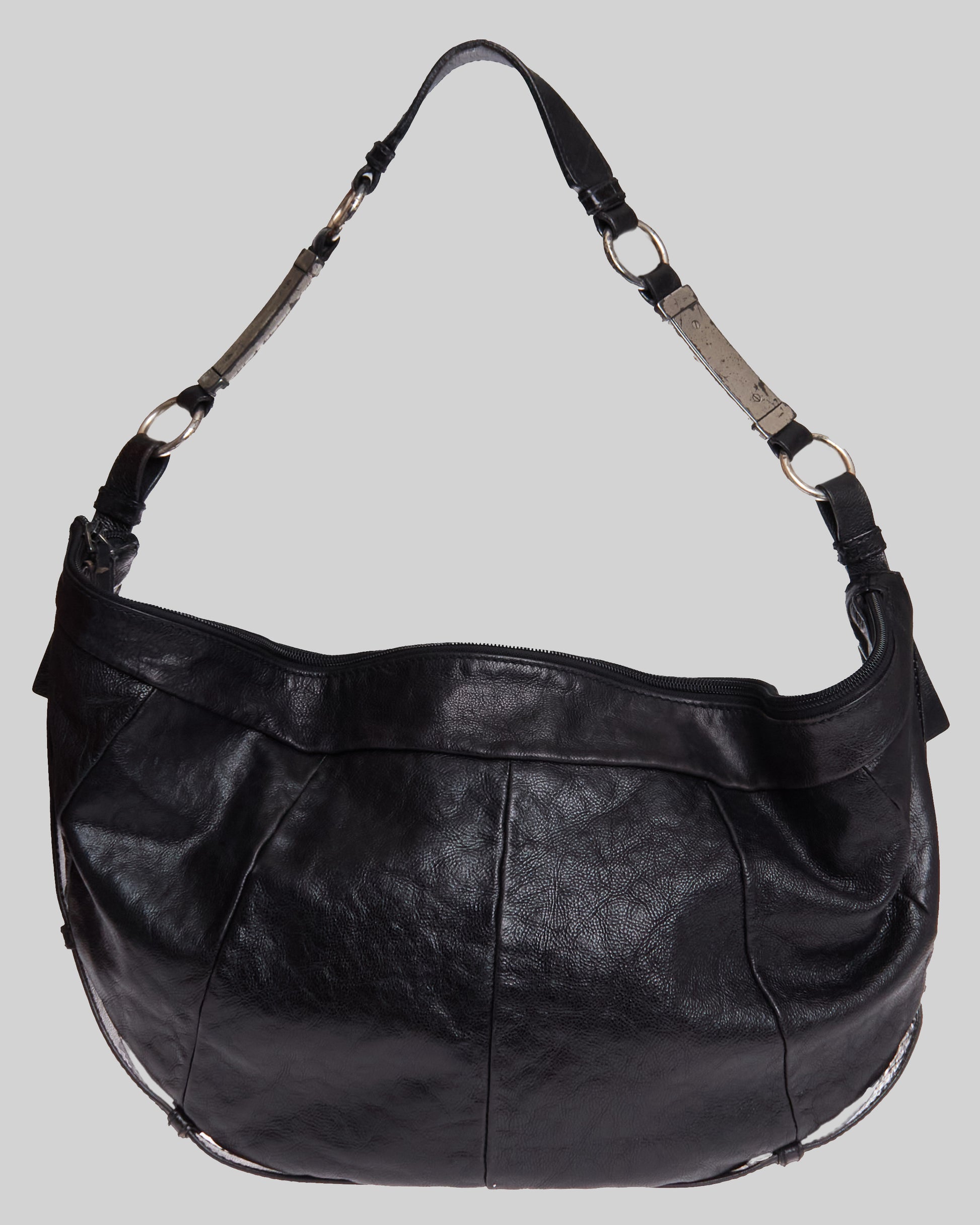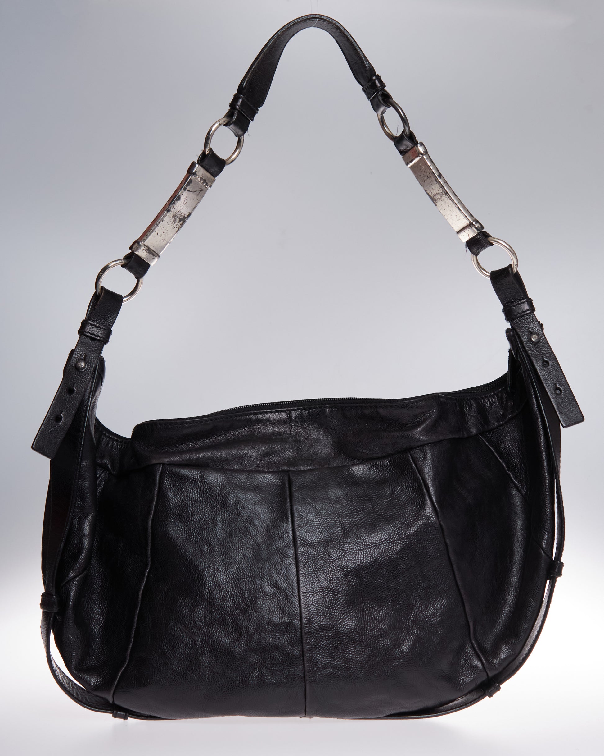 This Saint Laurent Big Mombasa by Tom Ford 2002 has a black leather exterior, a single adjustable strap with silver metal hardware and silver-tone details. You can wear it crossbody and as a shoulderbag.